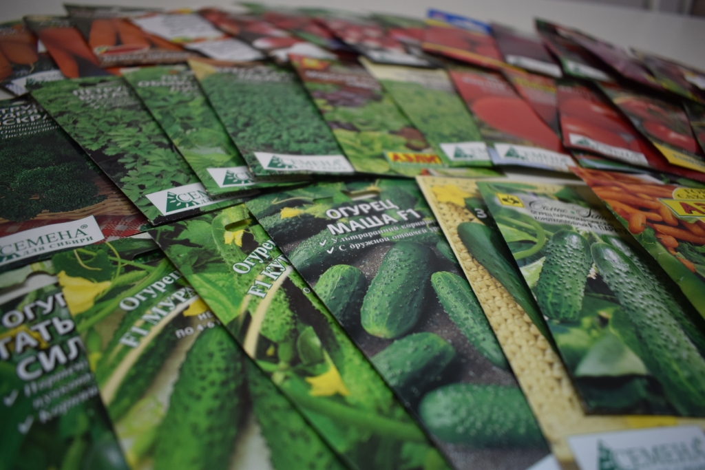 Всего для исследований в условиях, соответствующих нормам ГОСТа, было закуплено свыше 30 образцов отечественной и зарубежной селекции: семена огурцов шести сортов, томатов пяти сортов, свеклы пяти сортов, редиса четырех сортов, гороха трех сортов, моркови пяти сортов, кресс-салат одного сорта, листового салата двух сортов. Цена закупленных образцов варьировались от 6 до 85 рублей за упаковку.